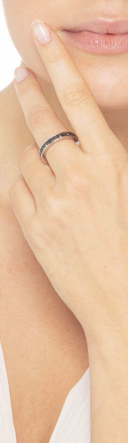 Anello eternity a binario in oro bianco 18k con diamanti neri, ct. 2,25
