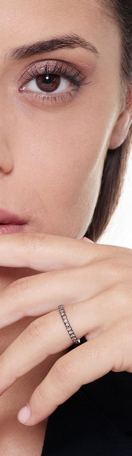 Anello Eternity a griffe in Oro Bianco 18k con Diamanti Brown