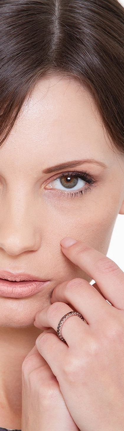 Anello Eternity a griffe in Oro Bianco 18k con Diamanti Cognac e punte brunite