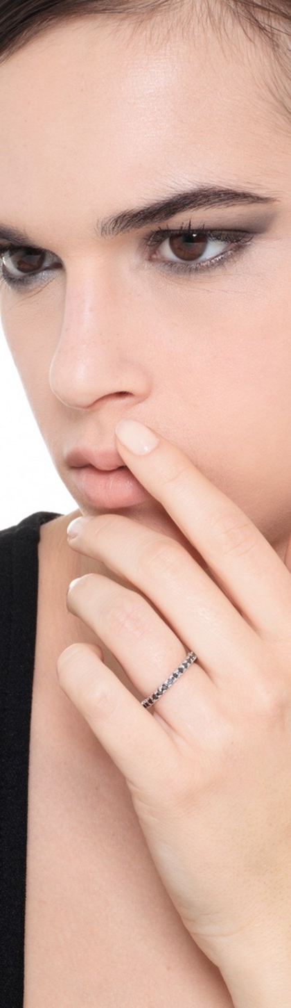 Anello Eternity a griffe in Oro bianco 18k con diamanti neri