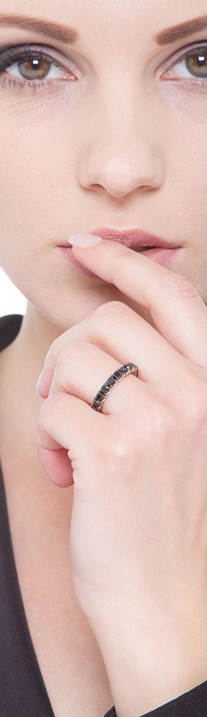 Anello Eternity a griffe in Oro Bianco 18k con incastonati Diamanti Neri