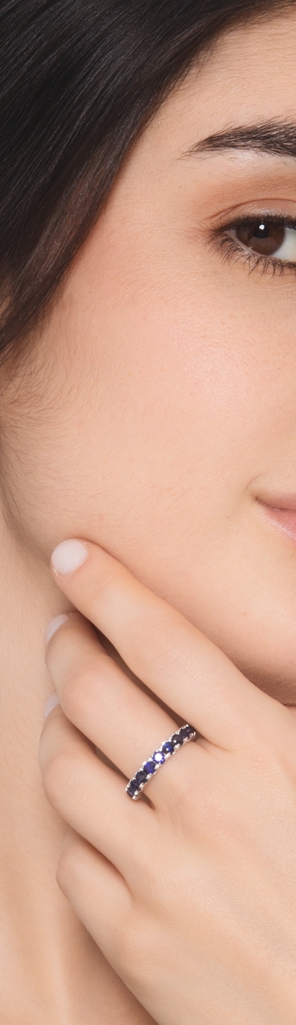 Anello Eternity a griffe in Oro Bianco 18k e Zaffiro Blu