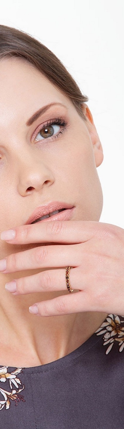Anello Eternity a griffe in Oro Giallo 18k con Diamanti Cognac