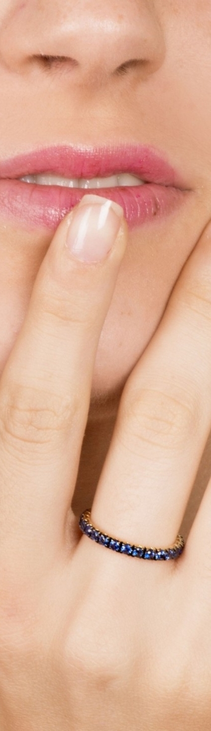 Anello Eternity a griffe in Oro Giallo 18k con Zaffiri Blu