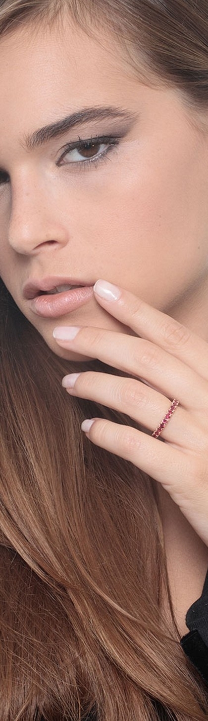 Anello Eternity a griffe in Oro Rosa 18k con Rubini