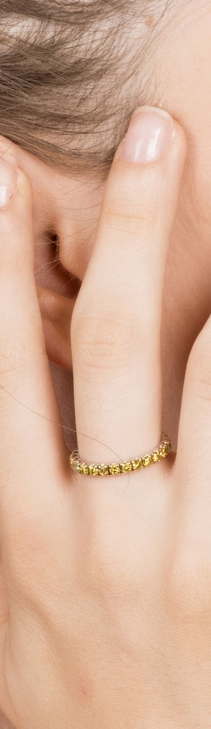 Anello Eternity in Oro Bianco 18k con Diamanti Gialli