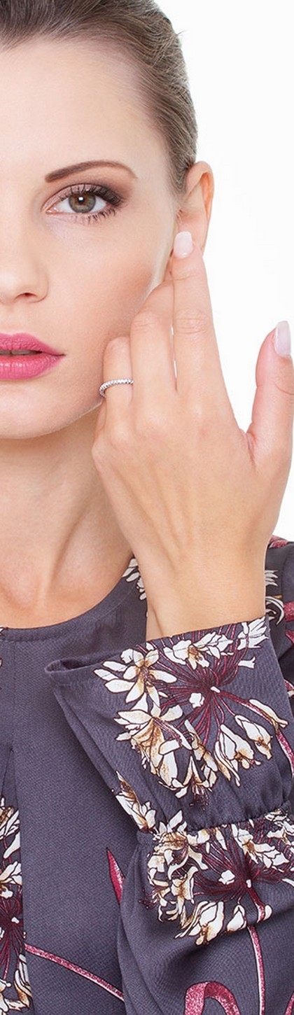 Gli anelli in eternity sono tra gli accessori più versatili.La caratteristica principale di questi modelli è la fascia interamente ricoperta da pietre preziose.Ciò rende questi anelli abbinabili a più look e indossabili quotidianamente.