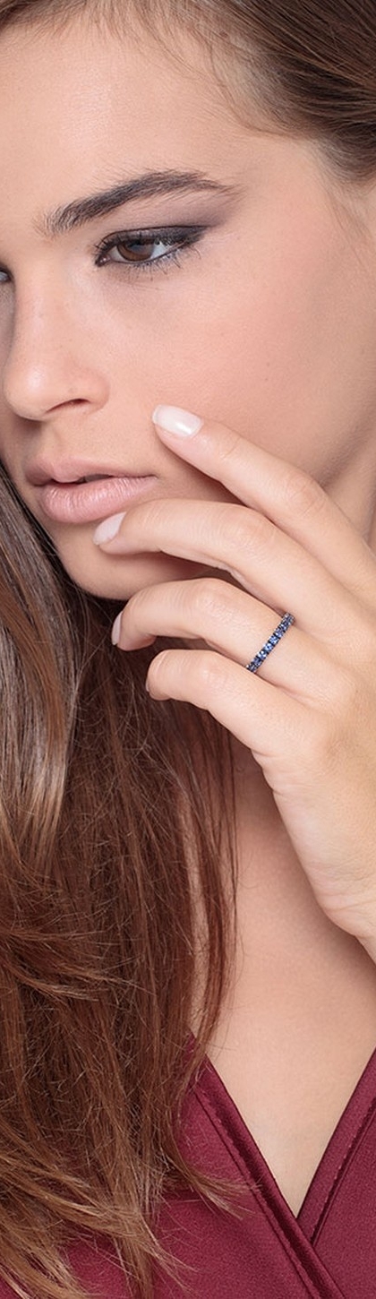 Anello modello Eternity a griffe in Oro Bianco 18k e Zaffiri Blu