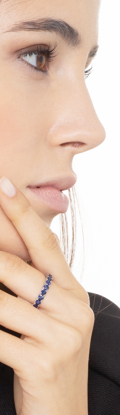 Anello modello Eternity in Oro Bianco 18k con Zaffiro Blu