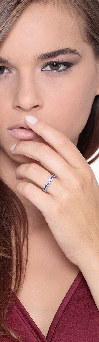 Anello modello Eternity in Oro Bianco 18k e Zaffiri Blu