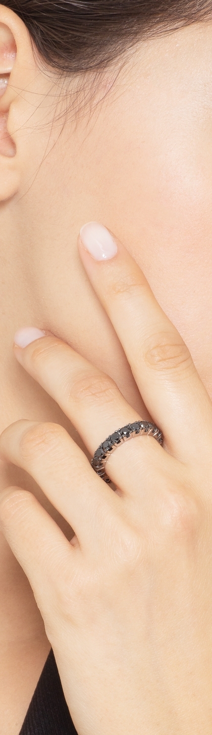 Eternity a griffe in Oro Bianco 18k con Diamanti neri e punte brunite