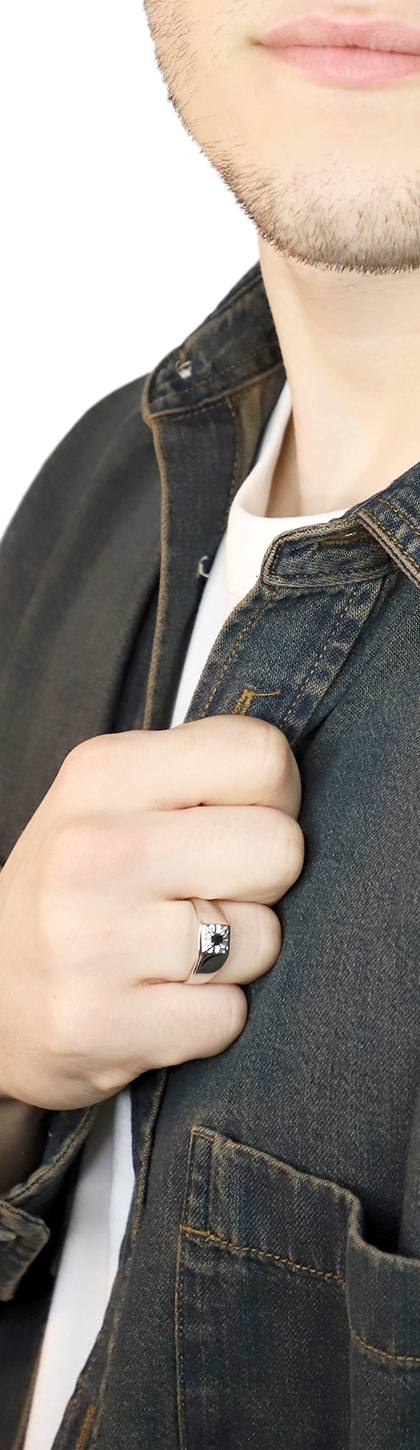Anello solitario in oro bianco 750 con diamante nero