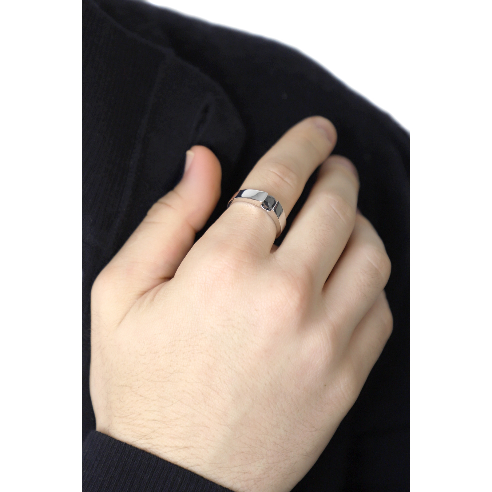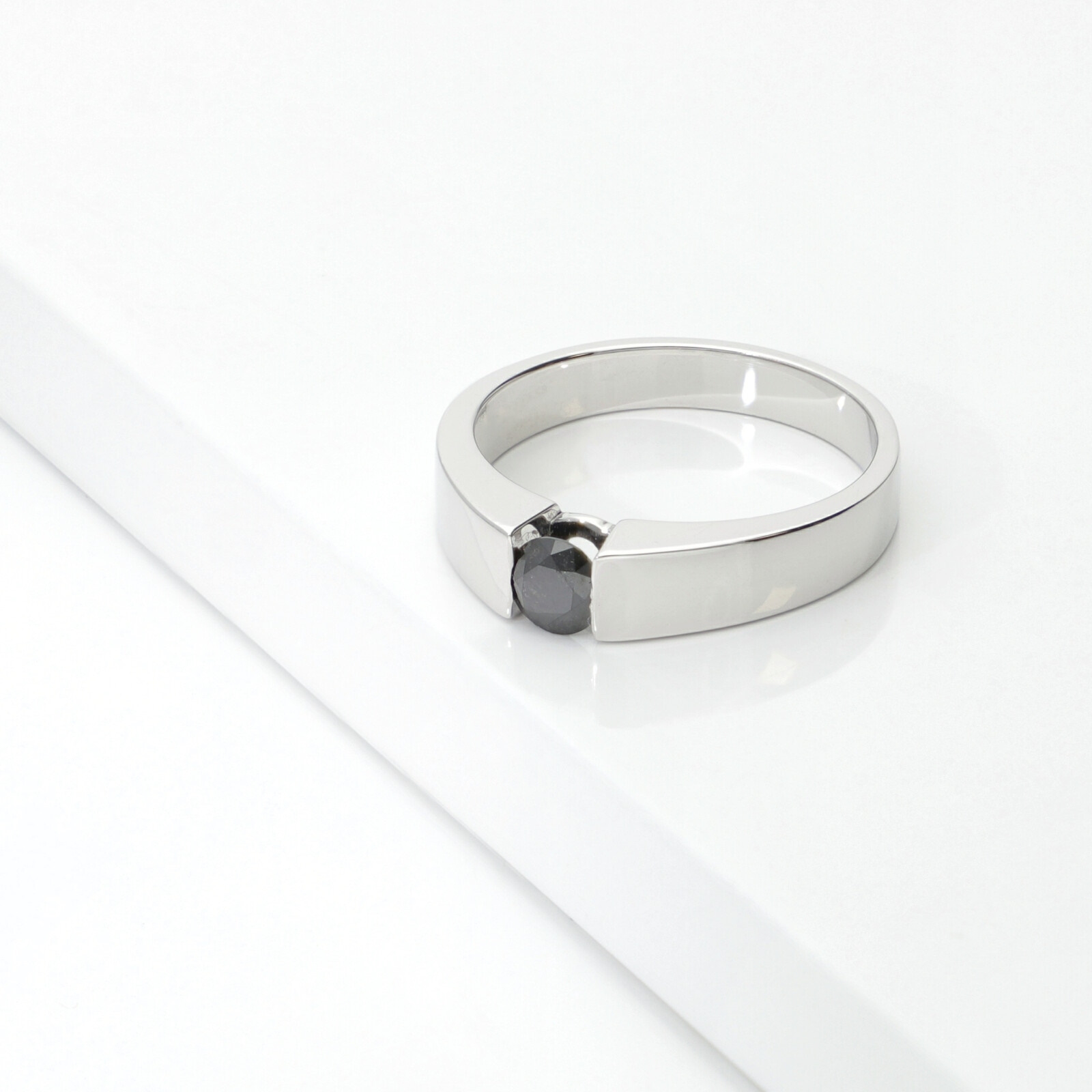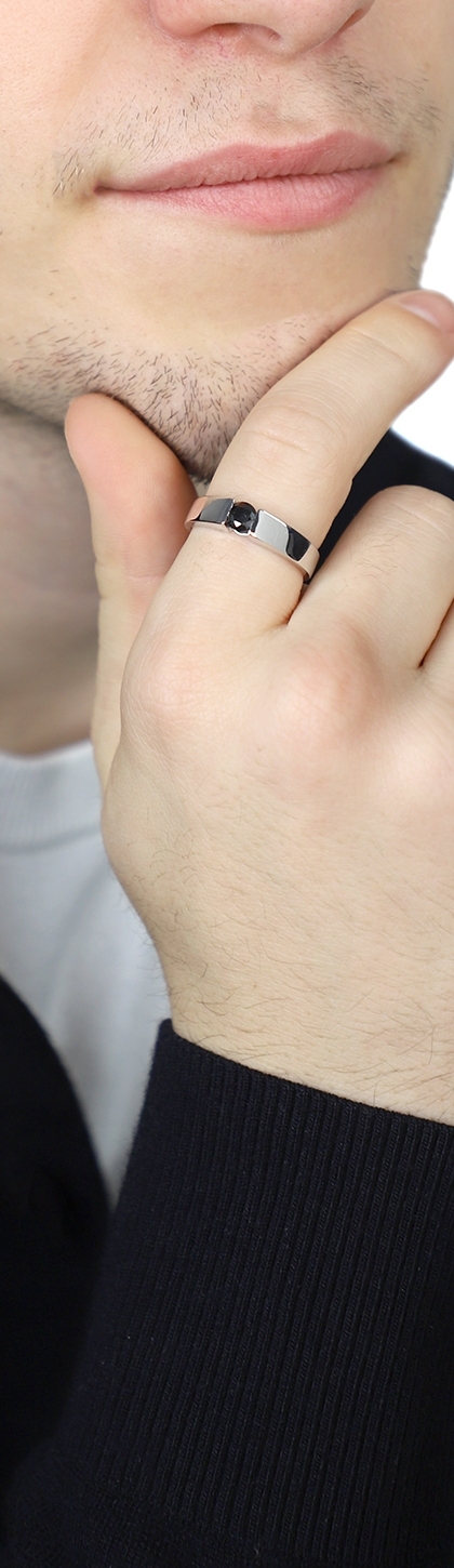 Anello solitario uomo in oro bianco 750 con diamante nero, 0.45 ct