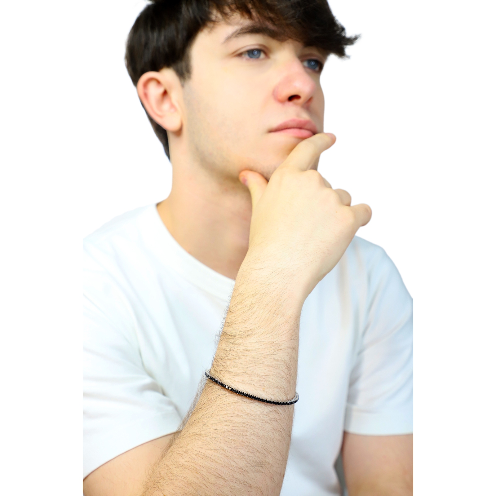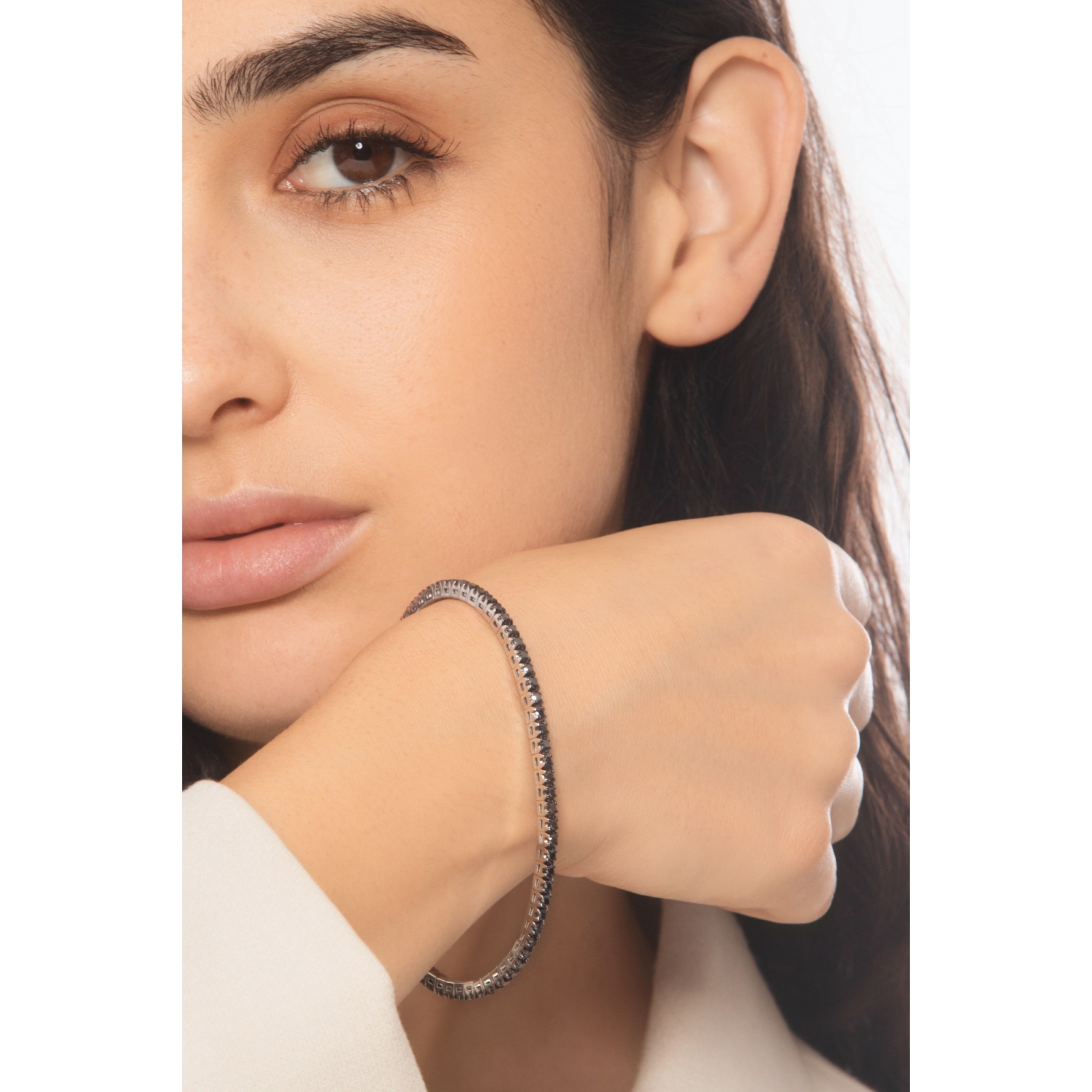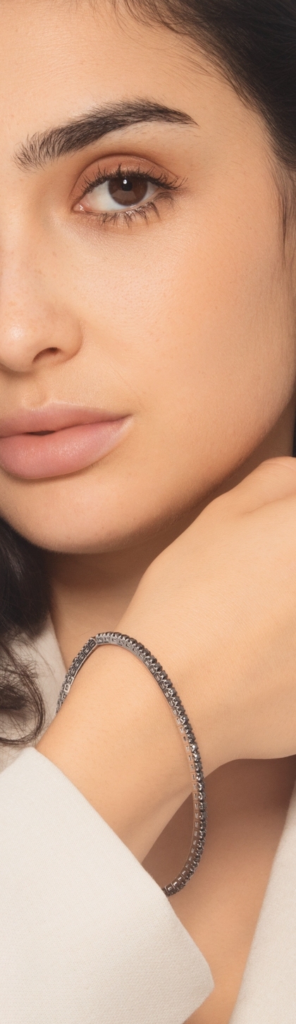 Bracciale elastico tennis con diamanti neri in oro bianco 18k