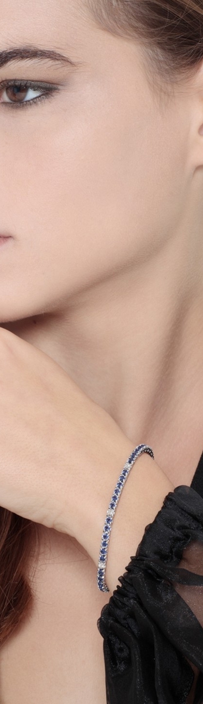 Bracciale Tennis con zaffiri blu e diamanti in oro bianco 18k