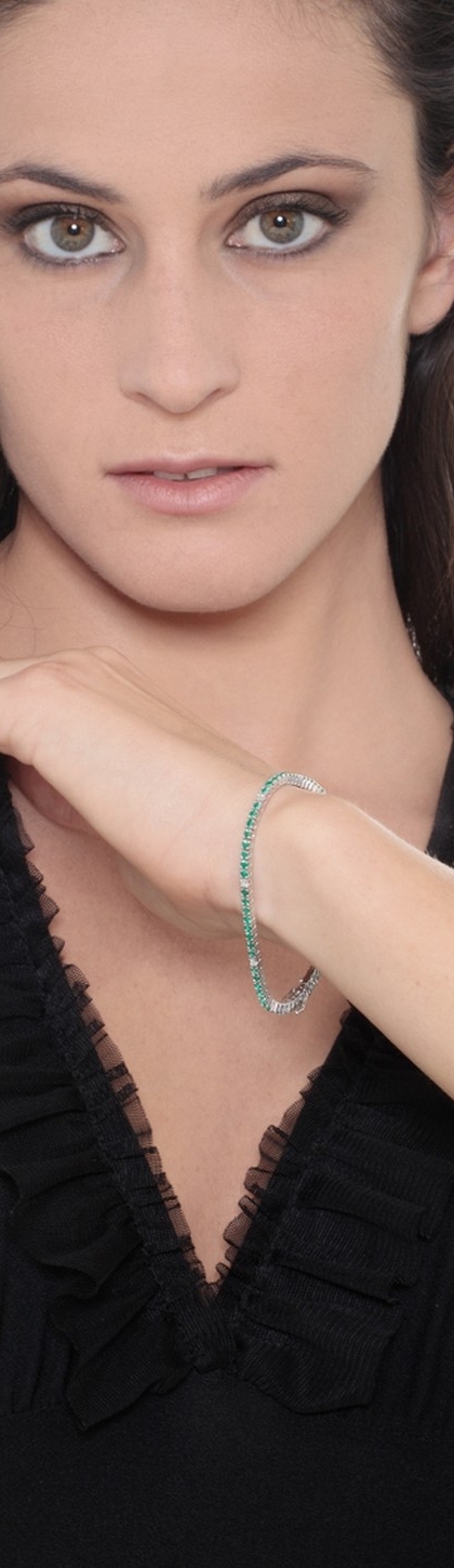 Bracciale Tennis filo in oro bianco 18k con diamanti e smeraldi