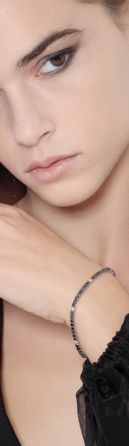 Bracciale Tennis Filo in oro Bianco 18k con Diamanti neri e bianchi