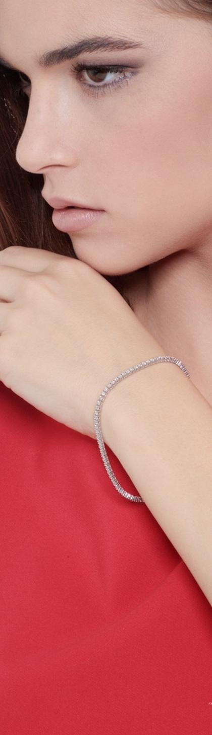 Bracciale Tennis filo in oro Bianco 18k con Diamanti