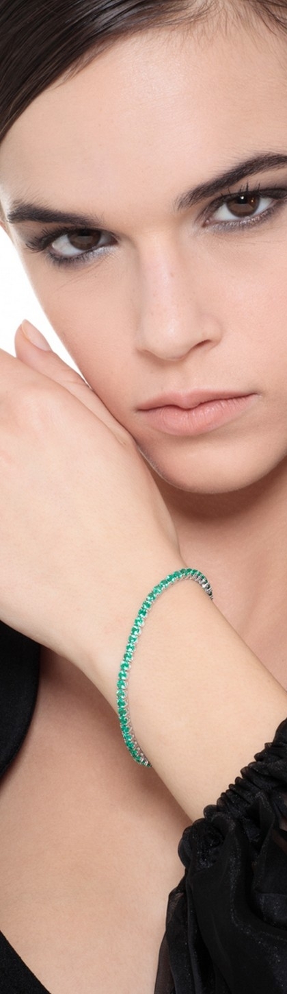 Bracciale Tennis filo in oro Bianco 18k con Smeraldi, larghezza maglia 3,10 mm Misura-15 cm, Carati-5,174.760,00 € -