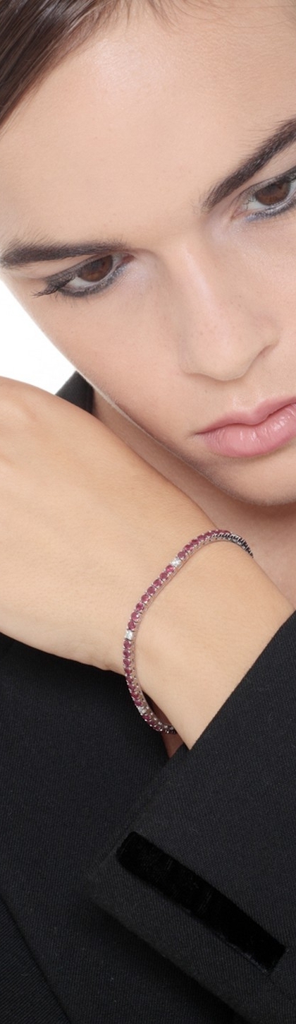 Bracciale Tennis in oro Bianco 18k con diamanti e rubini
