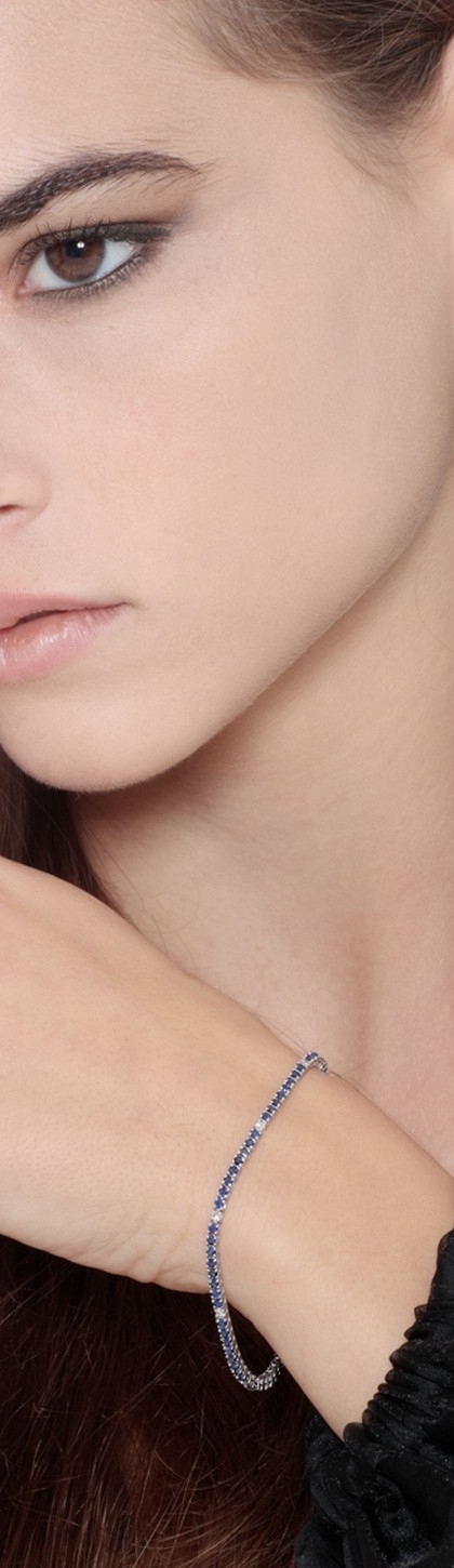 Bracciale Tennis in oro Bianco 18k con Diamanti e Zaffiri blu