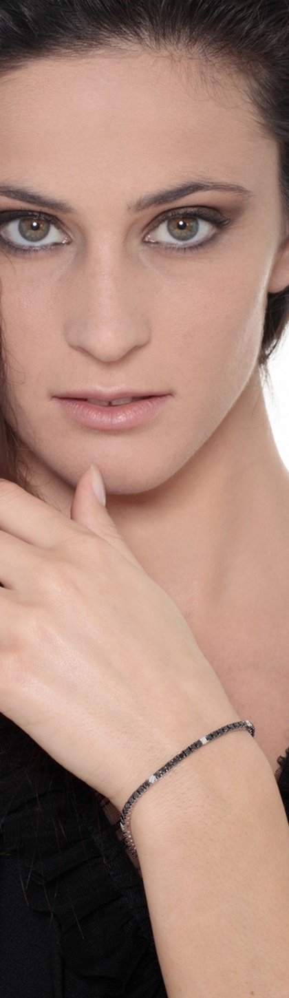 Bracciale Tennis in oro Bianco 18k con diamanti neri e bianchi, punte brunite