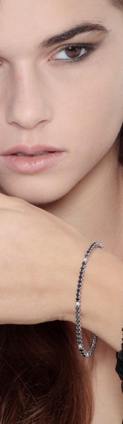 Bracciale Tennis in oro Bianco 18k con Diamanti neri e bianchi