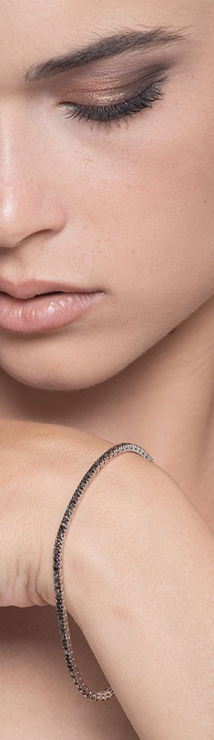 Bracciale Tennis in oro bianco 18k con punte brunite e diamanti neri