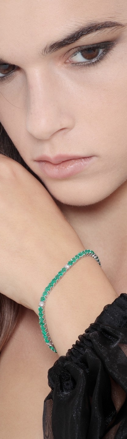 Bracciale Tennis in oro Bianco 18k con Smeraldi e Diamanti da 0,10 ct