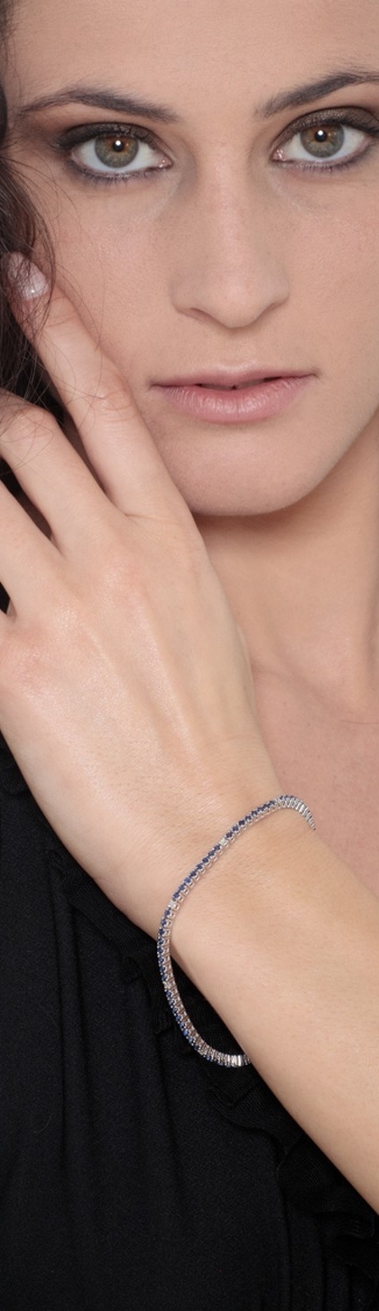 Bracciale Tennis in oro bianco 18k con zaffiri blu e diamanti alternati