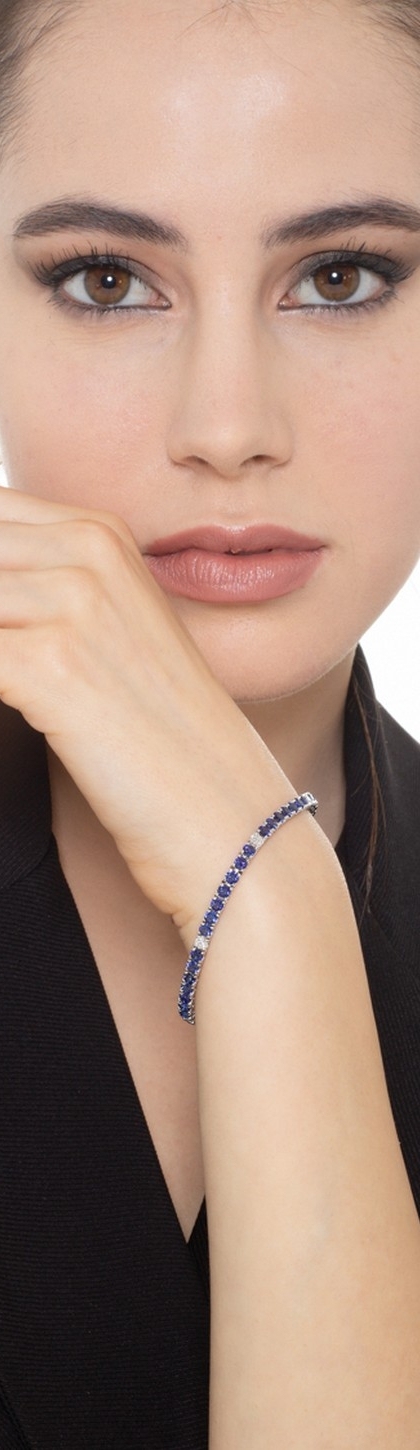 Bracciale Tennis in oro Bianco 18k con zaffiri blu e diamanti.