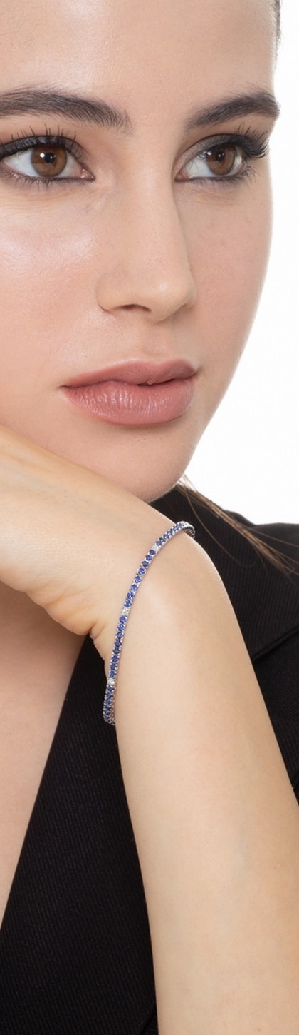 Bracciale Tennis in oro Bianco 18k con zaffiri blu intervallati da diamanti
