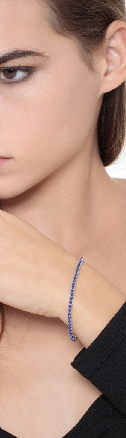 Bracciale Tennis in oro Bianco 18k con Zaffiri Blu, larghezza maglia 2,75 mm circa