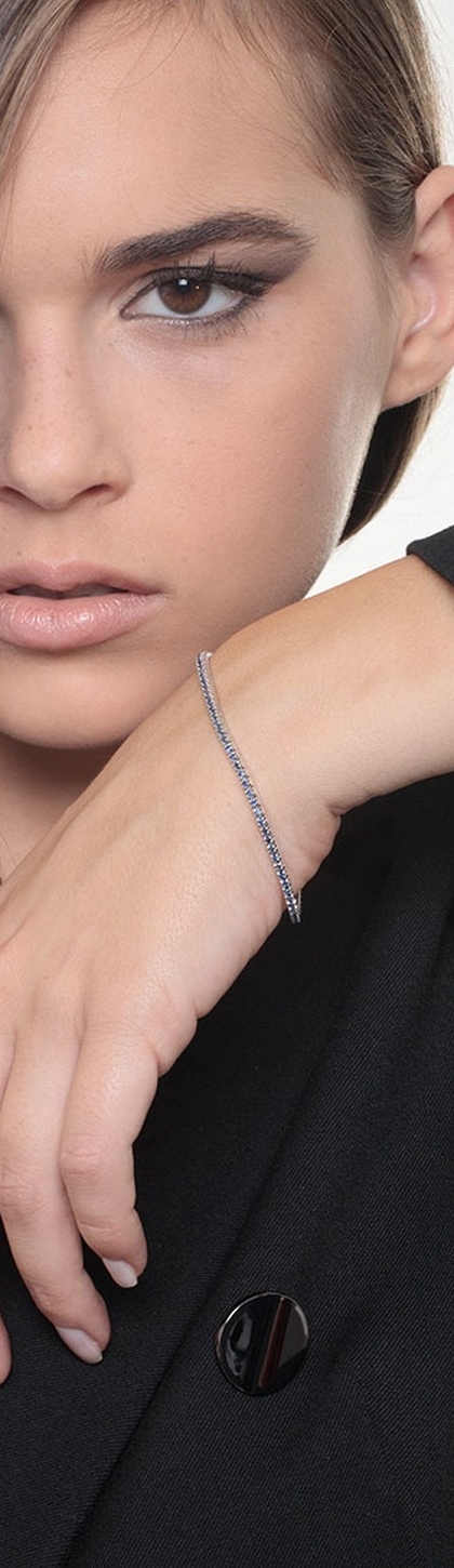 Bracciale Tennis in oro Bianco 18k con Zaffiri Blu