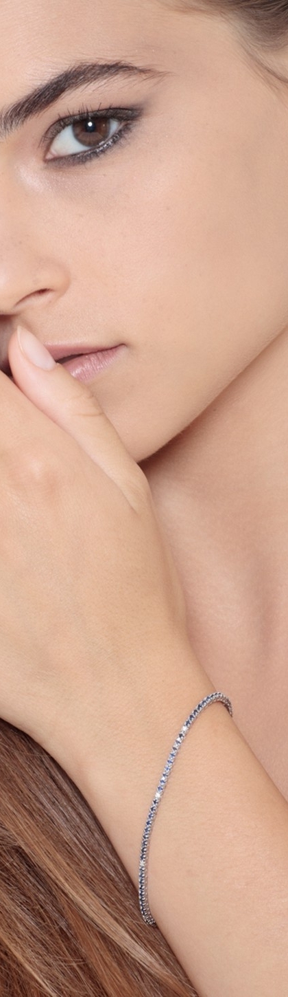 Bracciale Tennis in oro Bianco 18k diamanti e zaffiri blu