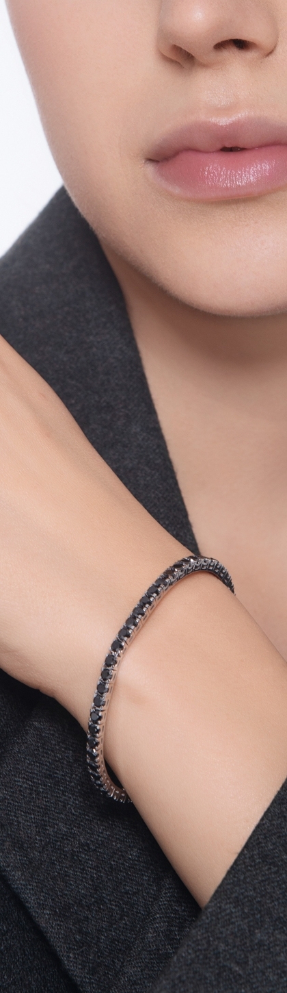 Bracciale Tennis lineare a griff quadro in oro Bianco 18k con diamanti neri