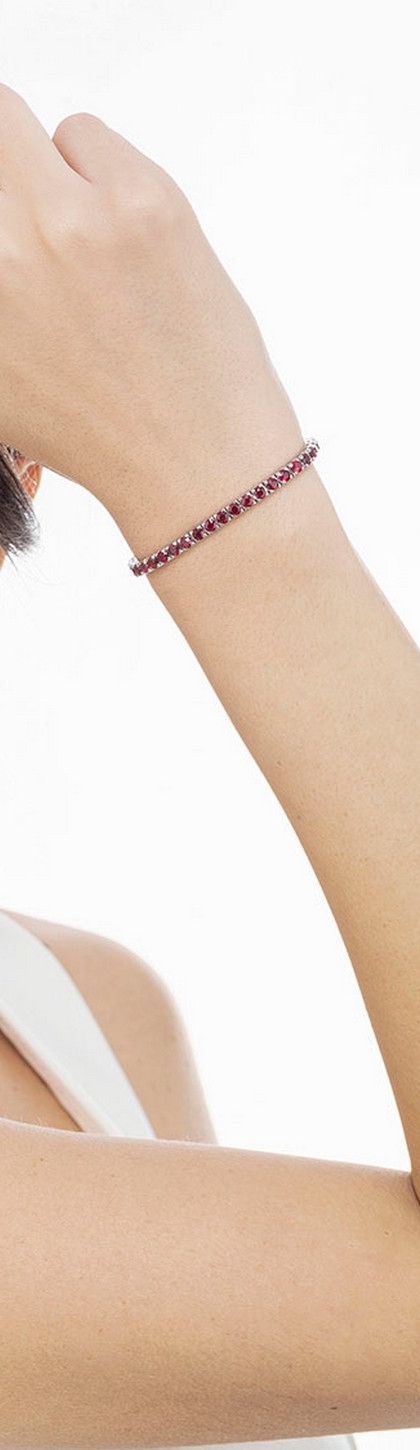 Bracciale Tennis lineare in oro Bianco 18k con Rubini