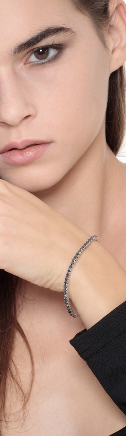 Bracciale Tennis maglia quadra in oro Bianco 18k con Diamanti neri