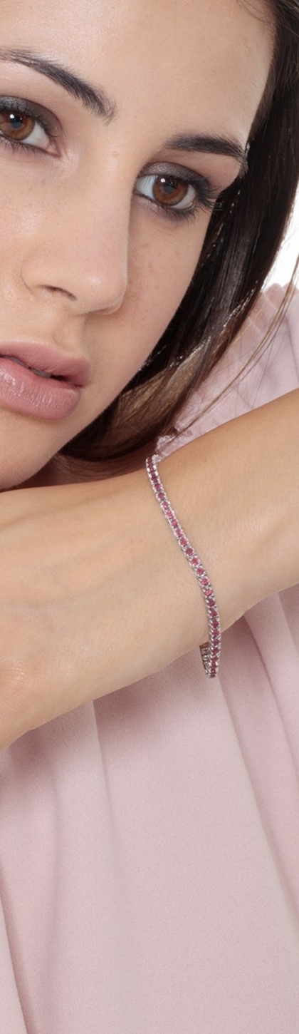 Bracciale Tennis modello piramide in oro Bianco 18k con Rubini