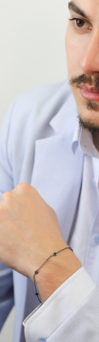 Bracciale da uomo in oro brunito 18k a 5 castoni con diamanti neri, cm 20