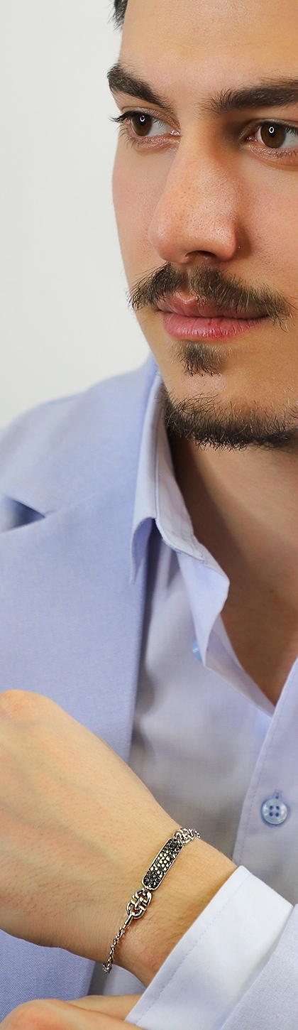 Bracciale in oro bianco 18k con Diamanti Neri, Uomo
