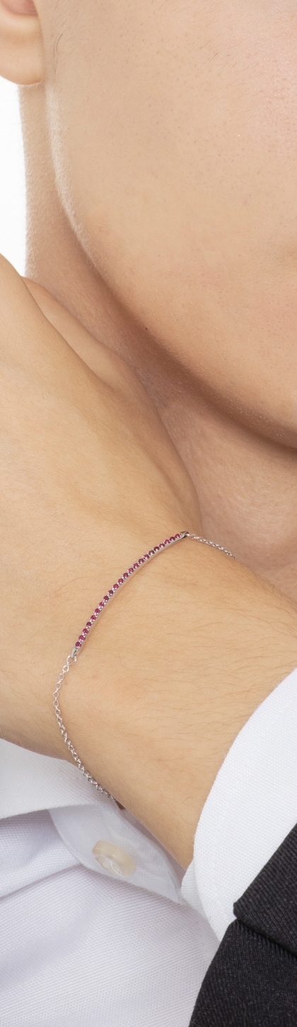 Bracciale in oro bianco 18k con barretta in rubini, Uomo
