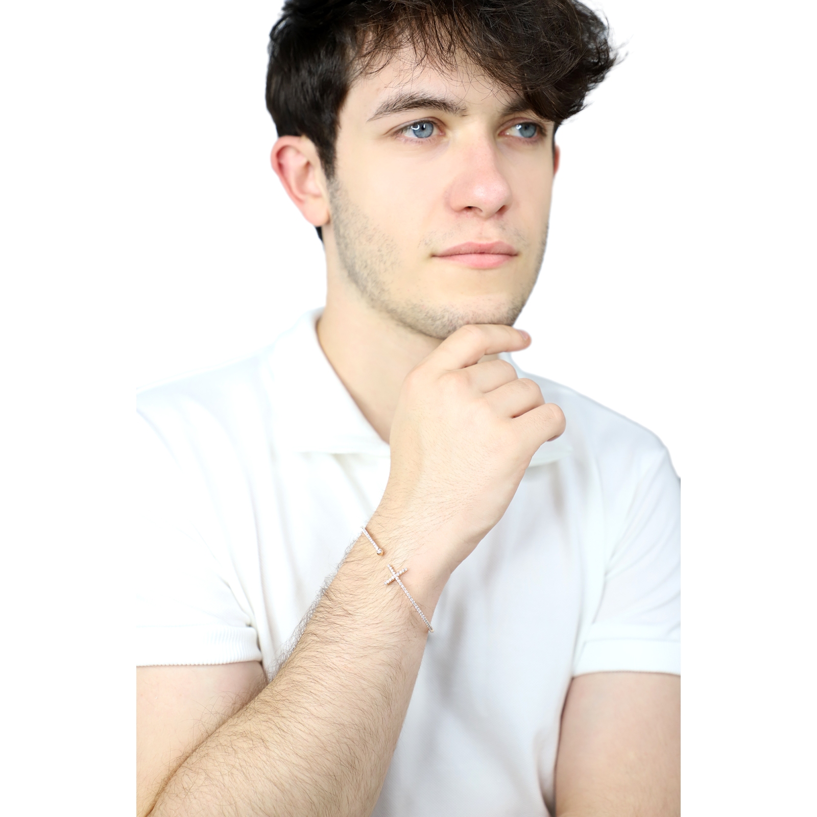 Bracciale flessibile in oro rosa 18k con Croce in diamanti