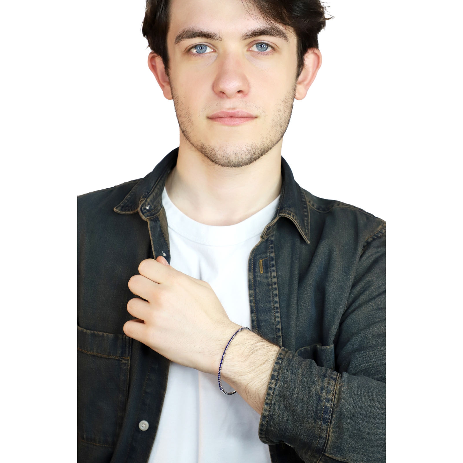 Bracciale rigido tennis con zaffiri blu in oro bianco 18k
