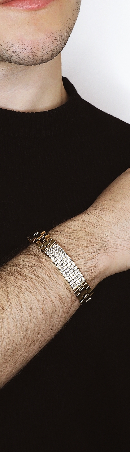 Bracciale uomo in oro giallo 750 con barra in zirconi