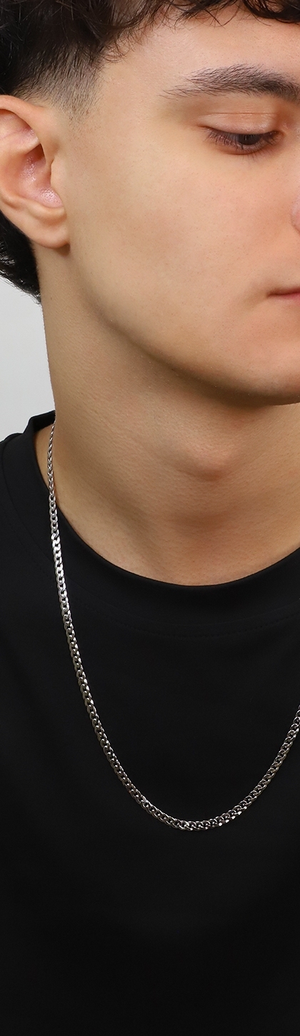 Collana a maglia groumette piatta in oro bianco 18k, cm 60.