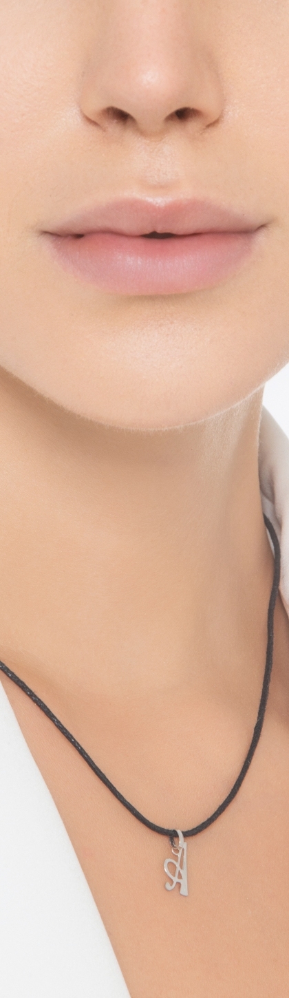 Ciondolo con lettera A in corsivo oro bianco 18k