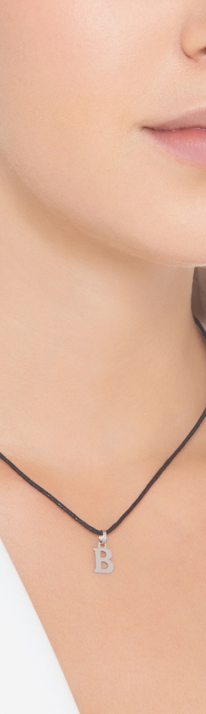Ciondolo con lettera B iniziale stampatello in oro bianco 18k