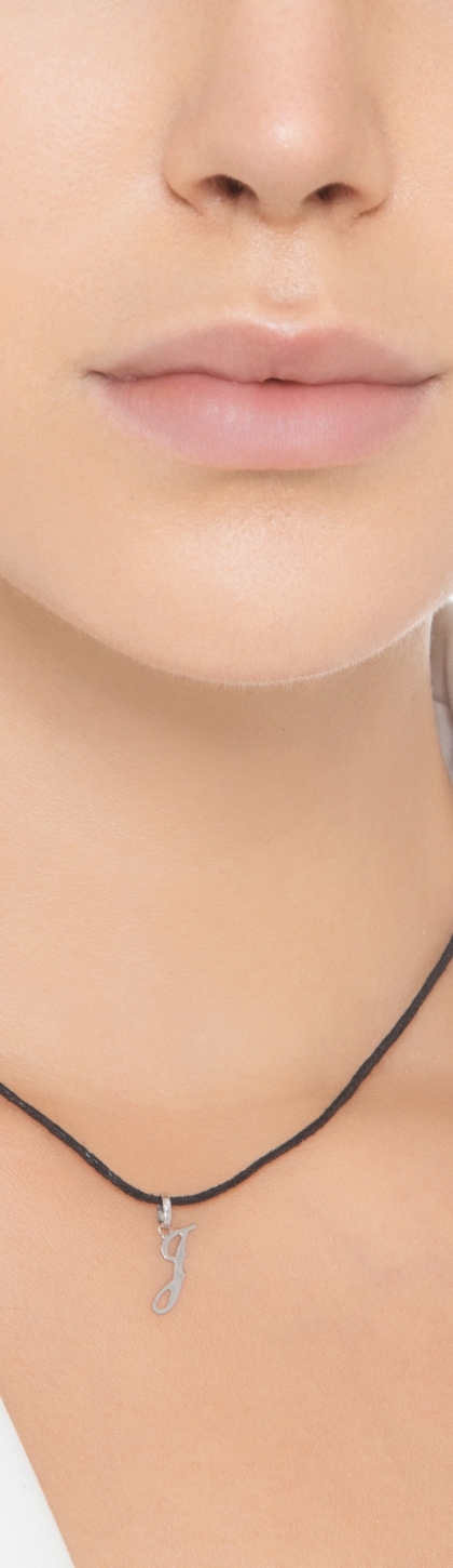 Ciondolo con lettera iniziale J corsivo in oro bianco 18k