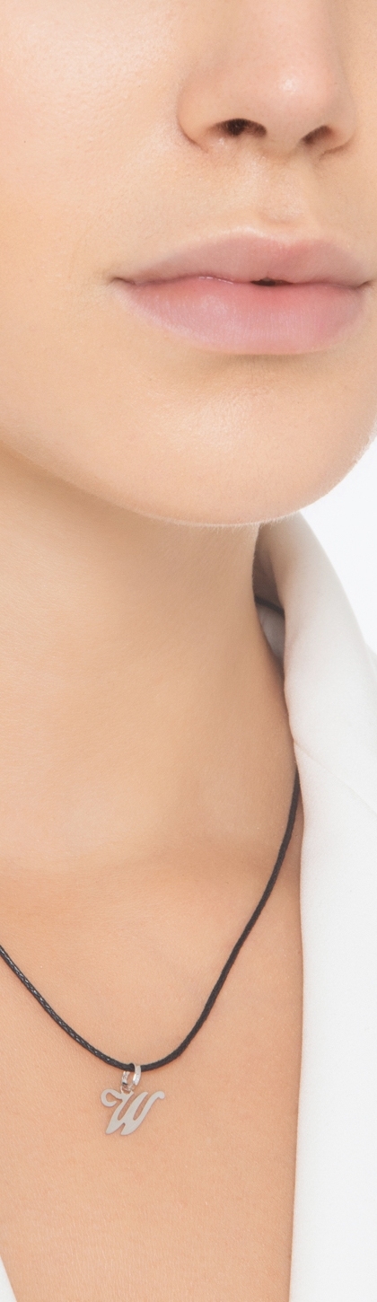 Ciondolo con lettera W in corsivo in oro bianco 18k